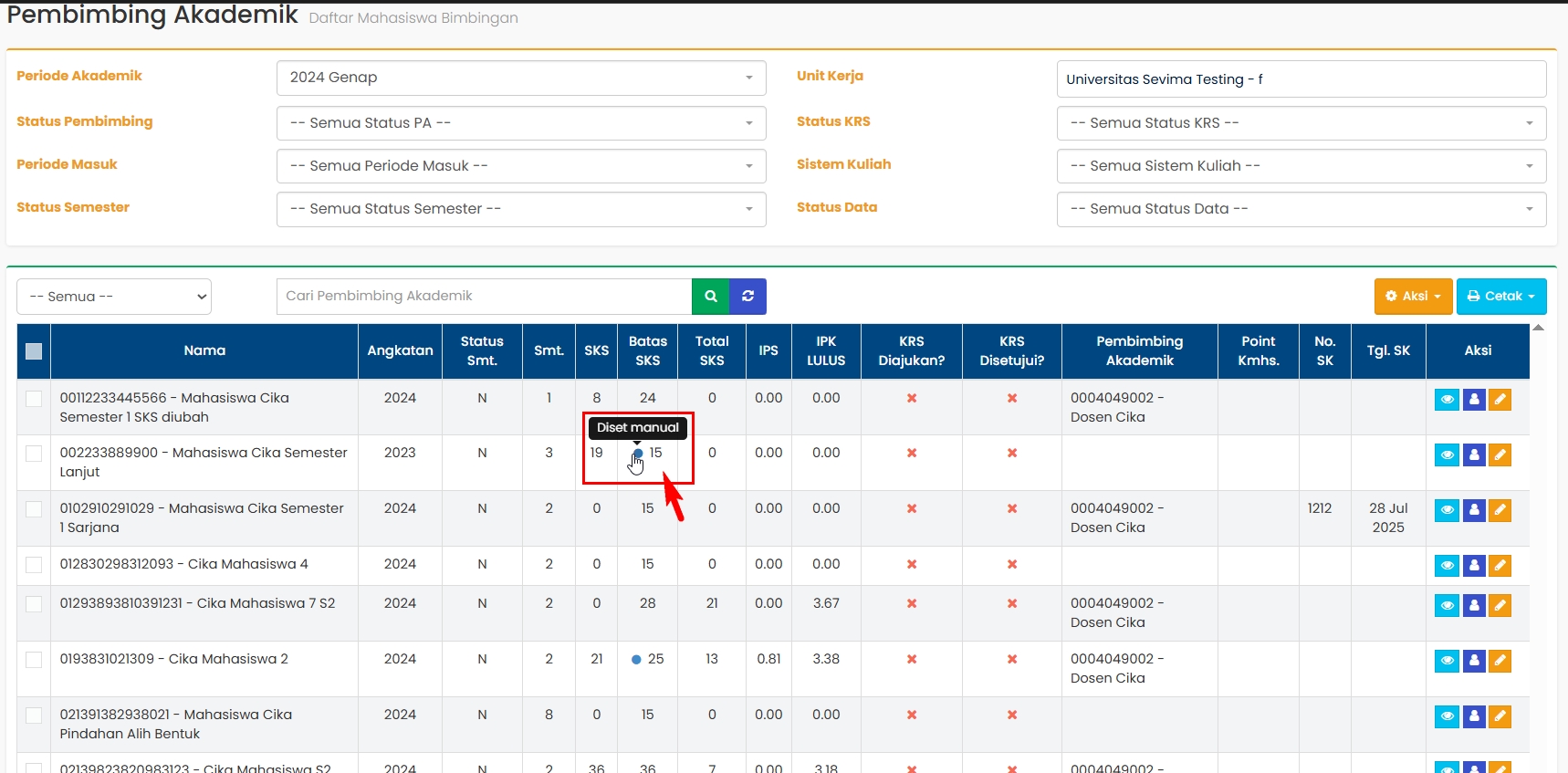 2. Pembimbing Akademik/Admin dapat mengubah Batas SKS Mahasiswa.