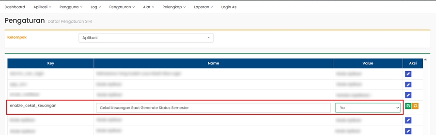 1. Admin Perguruan Tinggi dapat mengaktifkan pengaturan cekal keuangan