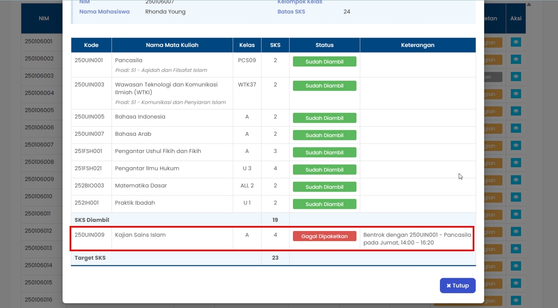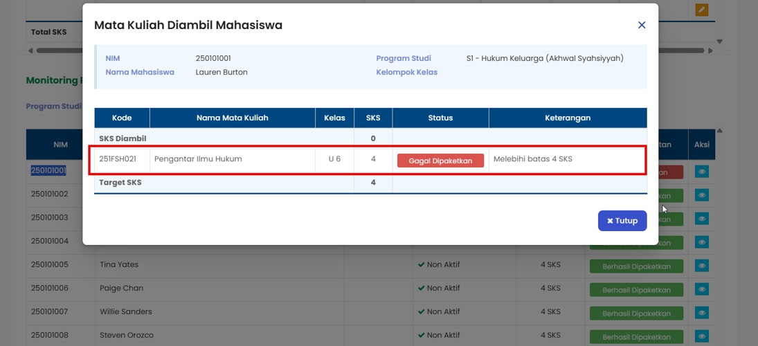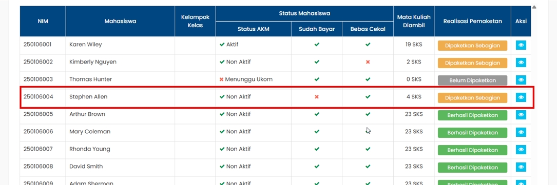 Admin tidak dapat mengetahui mana mahasiswa yang berhasil dipaketkan dan mana mahasiswa yang gagal dipaketkan.