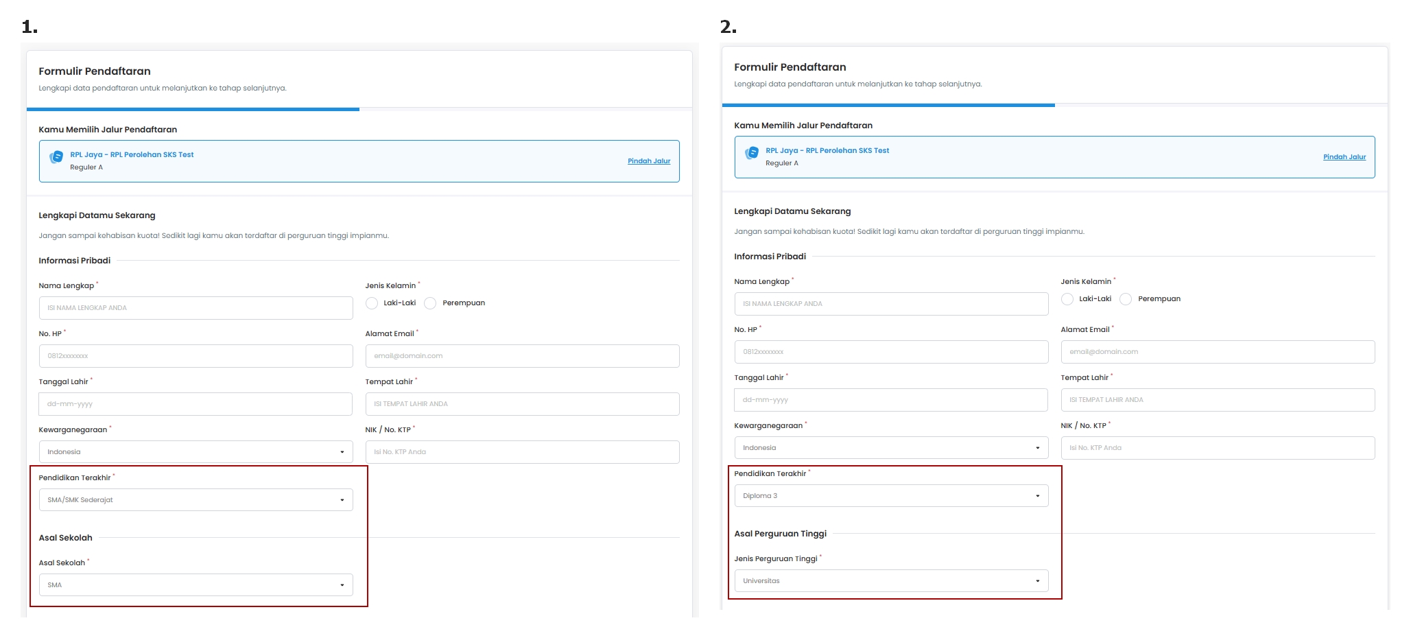 Pendaftar Jalur RPL Dapat Mengisikan Pendidikan Terakhir dengan Sesuai Untuk Meminimalkan Kesalahan Input dan Mempermudah Proses Pendaftaran