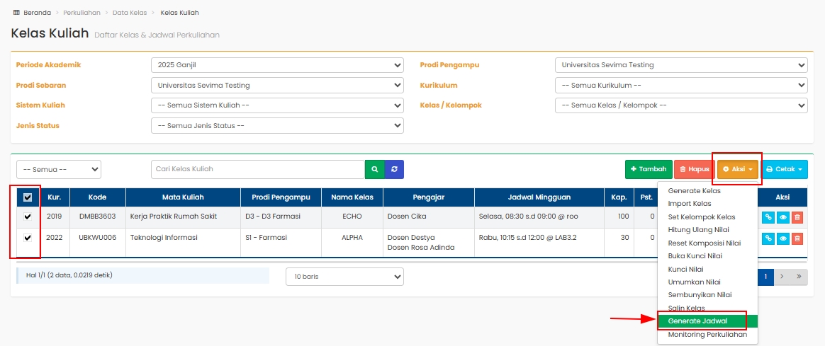Sering kali, beberapa kelas kuliah terlewat / belum dilakukan Generate Jadwal Perkuliahan.