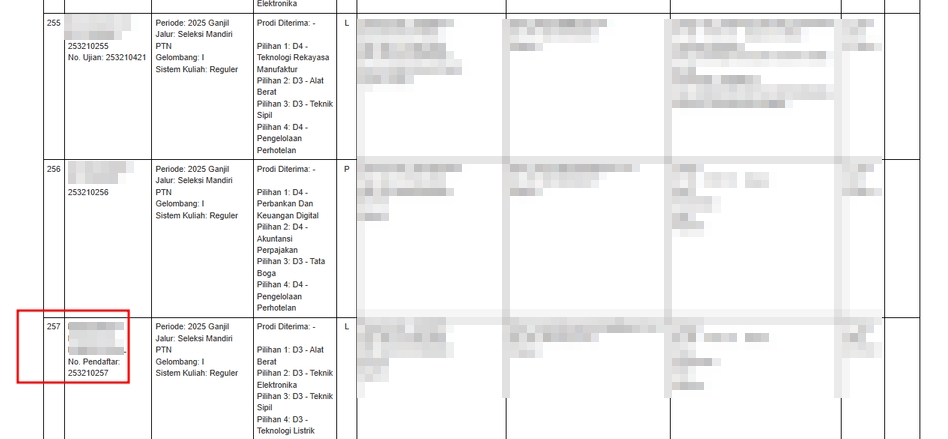 Pengumuman kelulusan Pendaftar ditentukan berdasarkan Pendaftar diterima pada pilihan Program Studi yang dipilih atau tidak, yang disesuaikan oleh Admin SPMB.