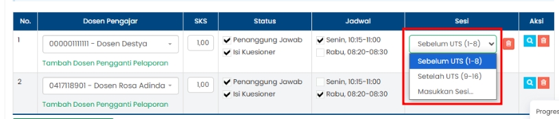 Admin Akademik secara fleksibel dapat menentukan pembagian Jadwal dan juga Sesi Dosen